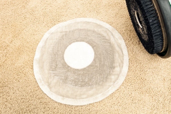 ▲低濕封裝清洗法過程中,清潔人員會使用專用封裝清洗機使地毯清潔劑和污漬塵土結合。