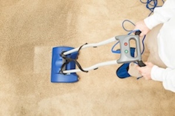 ▲噴吸回收清洗法過程中,清潔人員透過專門的抽洗機,將髒水抽離地毯。